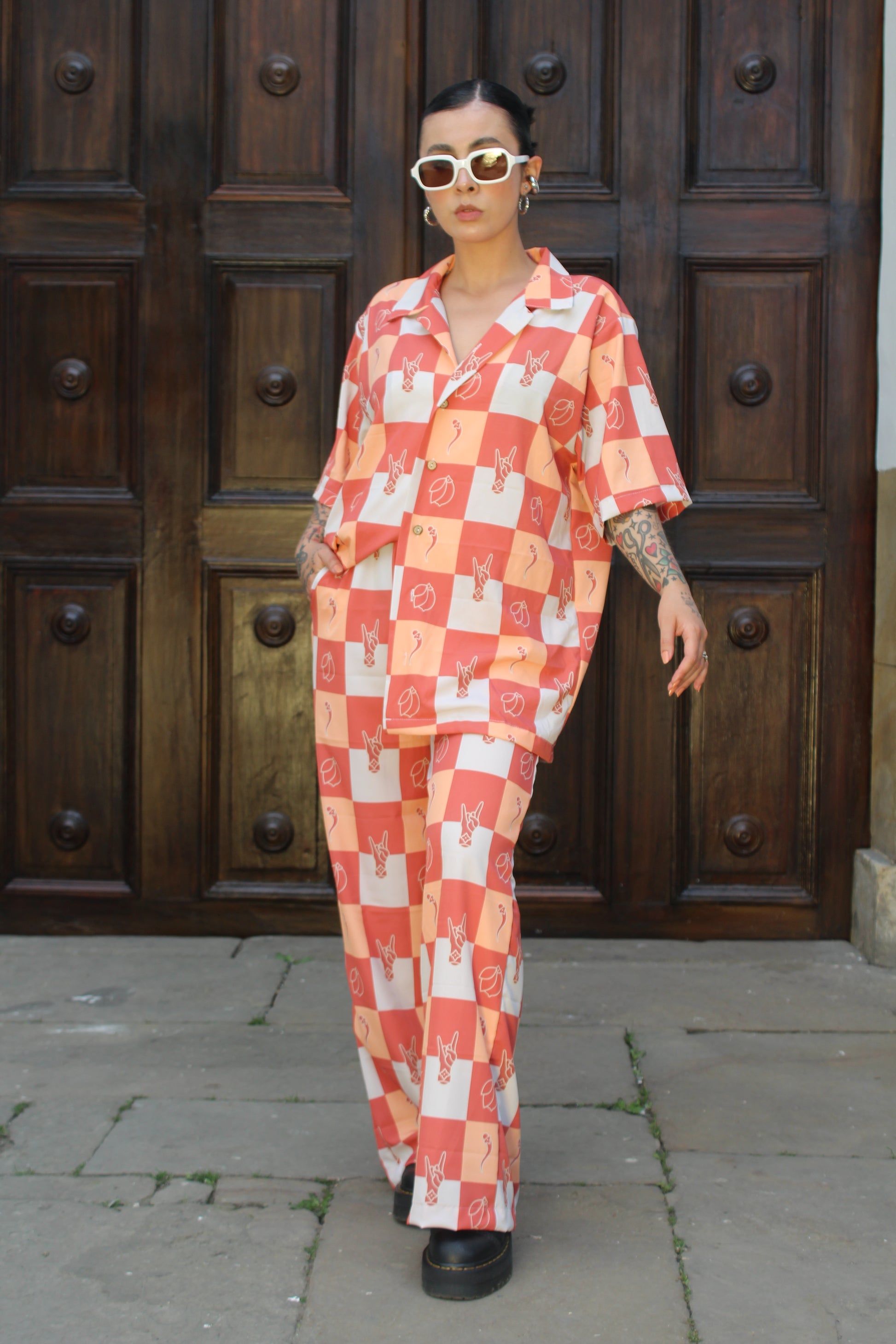 Está diseñado en seda mango, una tela suave, fresca y con mucho movimiento, su estampado es 100% exclusivo de nuestra marca. Su silueta es amplia y cómoda, tiene bolsillos, su cintura viene enresortada.